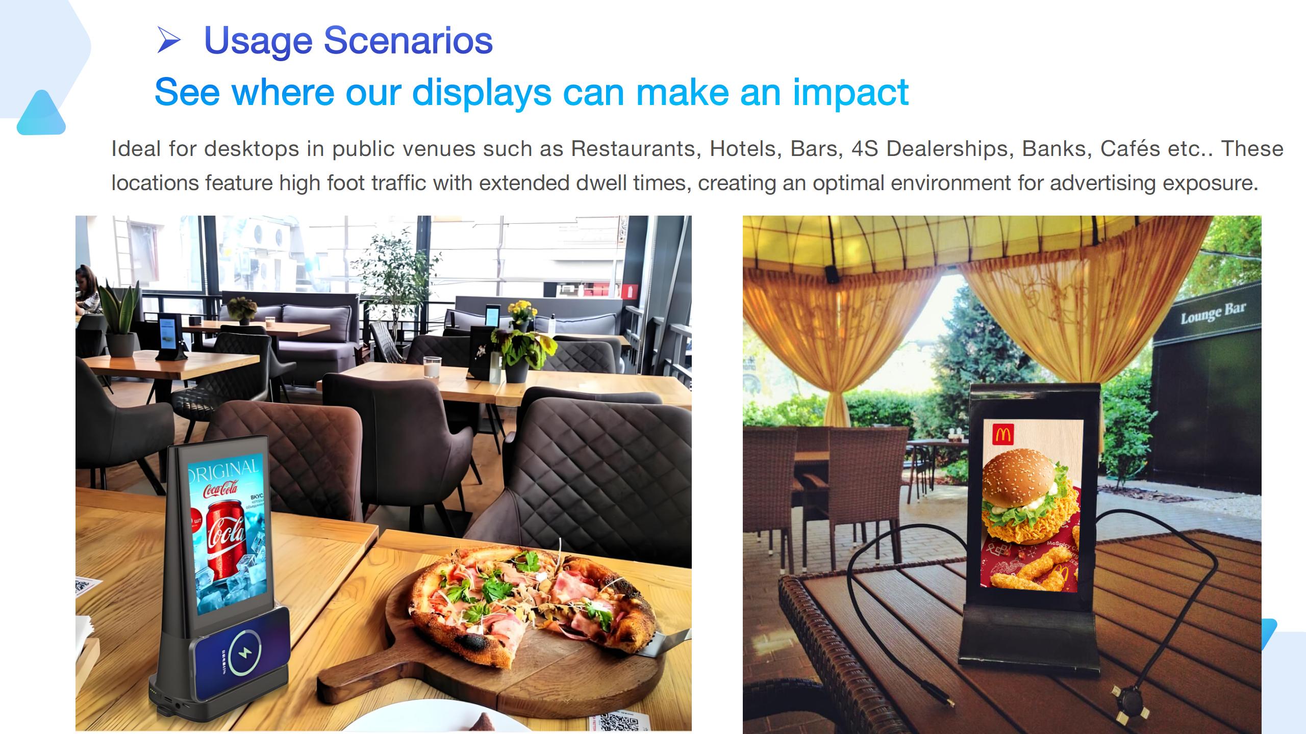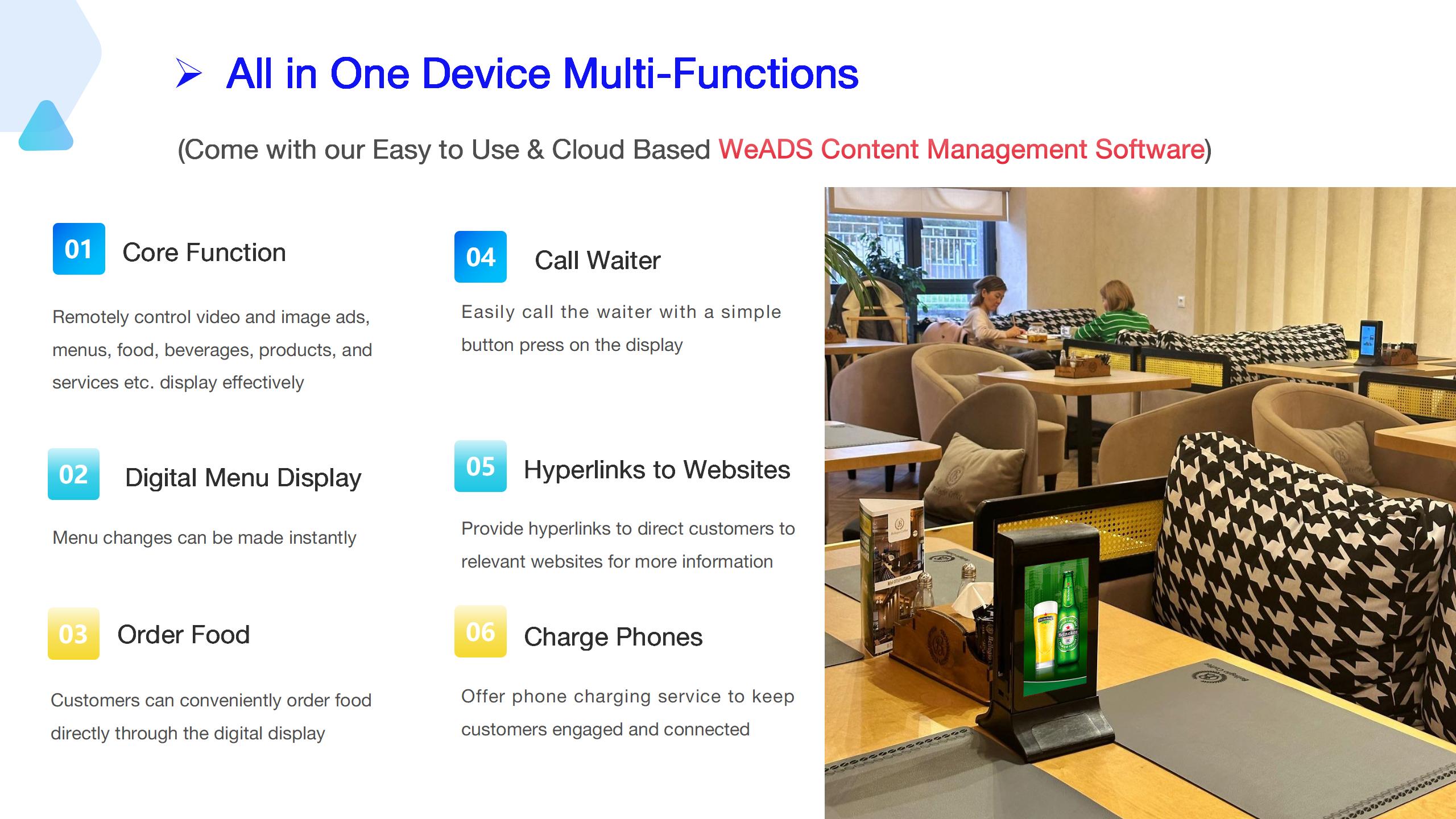 【Ideal for Restaurants, Bars, Coffee Shops, Hotels, Salons Car Dealerships, Banks, VIP Rooms etc】Digital Food / Drinks / Menu / Service Display on Tables to drive immediate purchase intent.